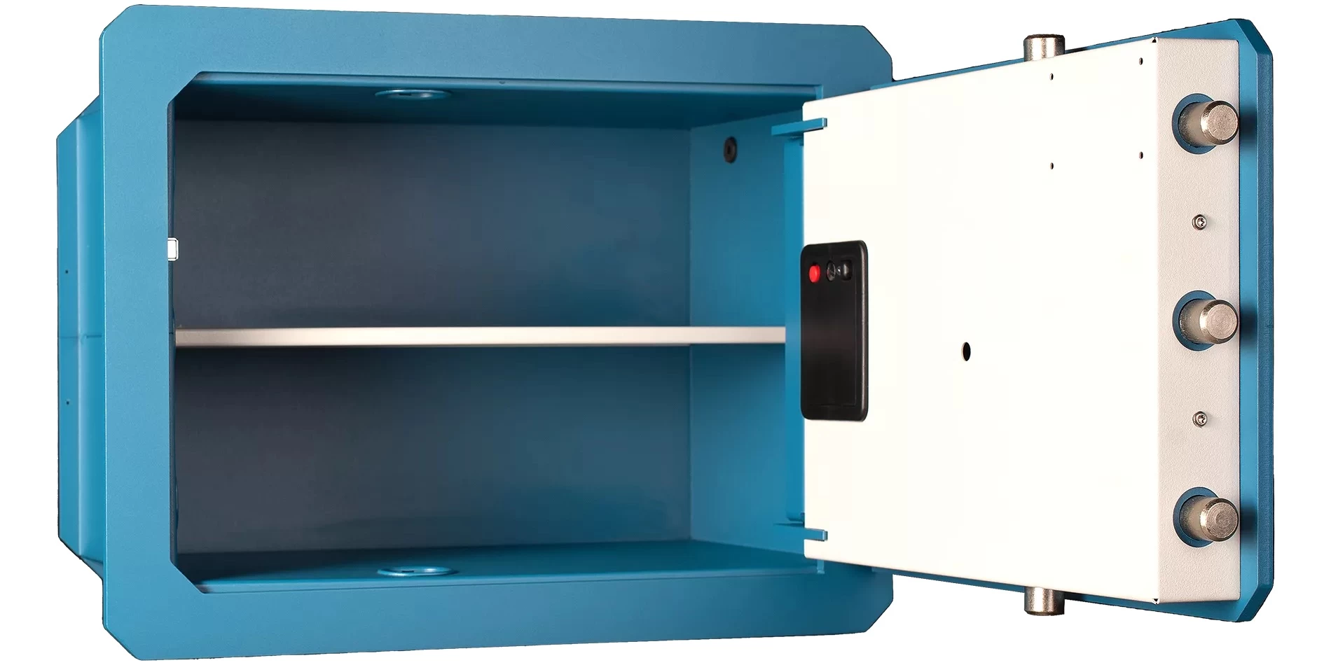 Дверь сейфа подвешена на внутренних петлях, что успешно препятствует её срезанию путём распиливания петель, и распахивается на угол 90°, предоставляя владельцу полный обзор содержимого.